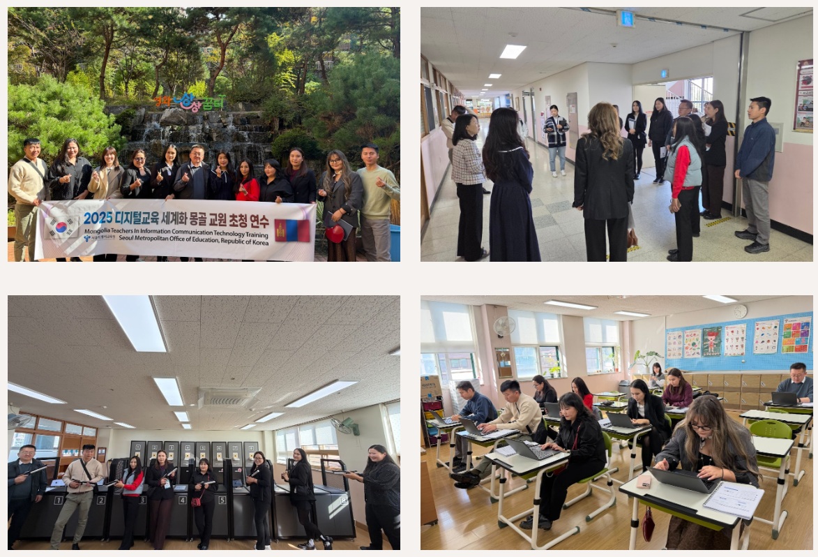 서울영화초등학교(교장 전상애)는 10월 22일(수), 몽골 ICT 교원 10명을 초청하여 진행된 ‘2025 몽골 교원 초청 디지털 교육연수’를 성공적으로 마무리하였습니다. 이번 연수는 한국과 몽골 간 교육 교류와 협력을 강화하고, 디지털 시대에 걸맞은 교수법을 전파하며 몽골 교원들의 디지털 역량 강화를 위해 기획되었습니다.