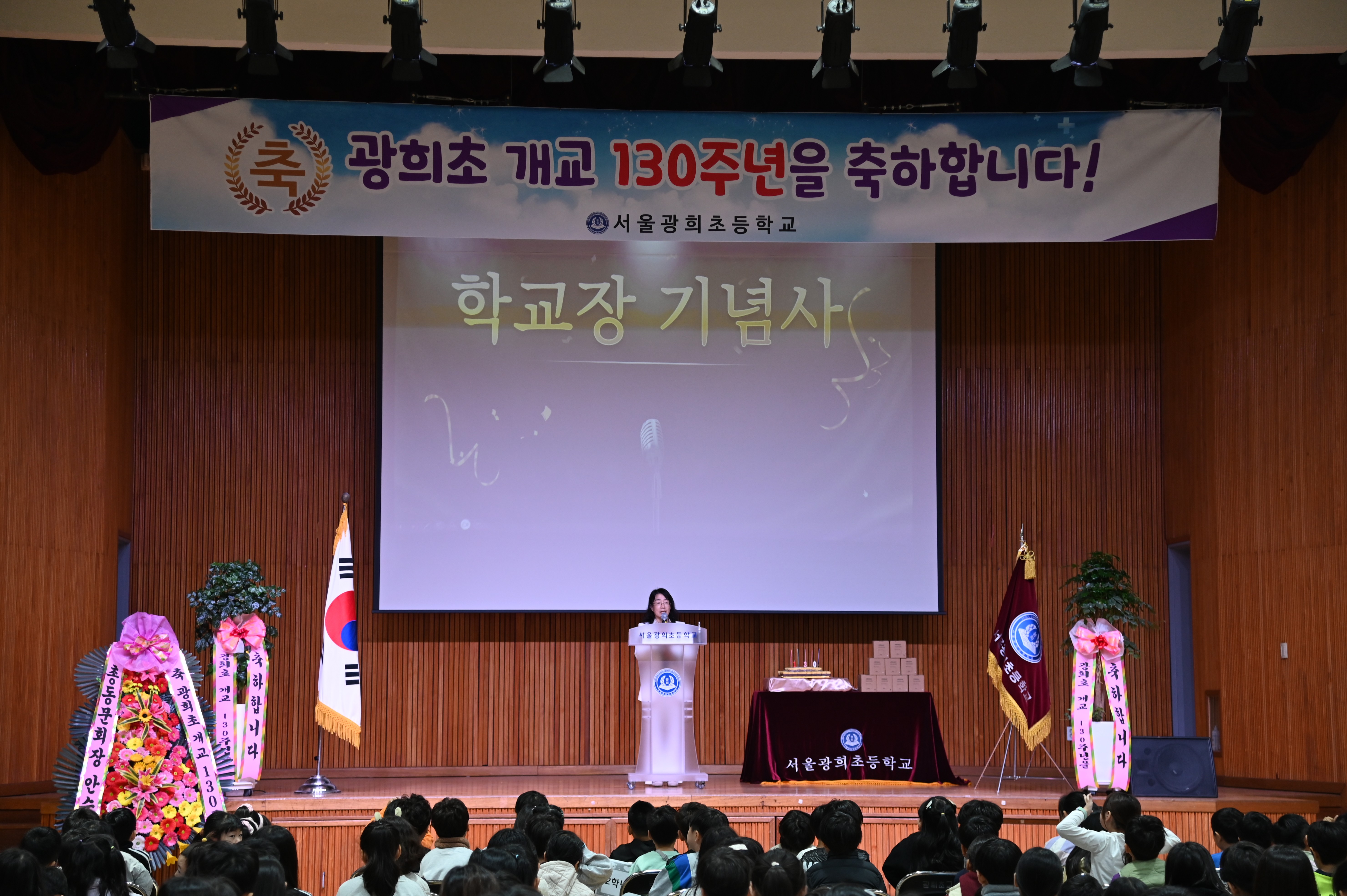 서울광희초등학교(교장 김문숙)에서는 10월 31일(금) 개교 130주년 기념식을 실시하였습니다. 서울광희초등학교는 1895년 서울 최초로 설립된 관립소학교로 130년 역사와 정신을 되새기고 미래 교육의 비전을 제시하는 자리였습니다.