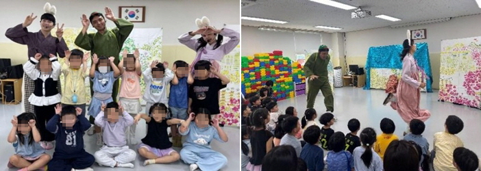 유아들은 자라와 토끼, 용왕이 등장하는 흥미로운 장면들을 집중해서 보며 이야기의 전개를 자연스럽게 이해하였고, 전래동화의 가치와 지혜를 즐겁게 접하게 되었습니다. 또한, 실제 무대 공연을 관람하는 경험을 통해 예술을 감상하는 태도와 더불어 예술에 대한 흥미와 문화적 감수성을 키우는 시간이 되었습니다.