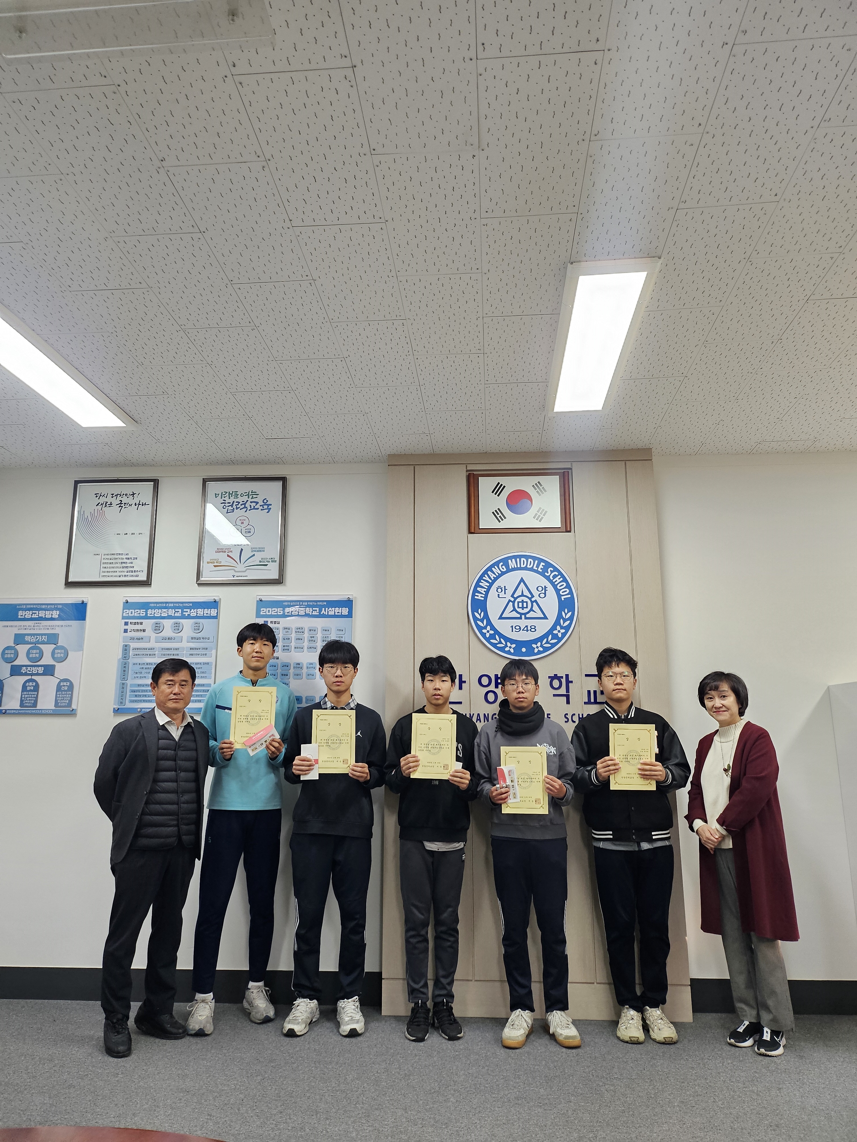 한양중학교(교장 서승현)는 지난 11월 20일(목, 7교시) 학생들의 자발적인 독서 활동을 장려하기 위한 ‘독서왕 선발대회’를 성공적으로 진행했다. 올해의 선정 도서는 조지 오웰의 대표작 「동물농장」으로 학교는 학생들이 작품의 줄거리뿐 아니라 상징적 의미, 시대적 배경, 사회적 메시지까지 폭넓게 이해하며 읽을 수 있도록 독려하였다. 행사에 앞서 학교는 한 달 전 가정통신문을 통해 가정에서도 해당 도서를 함께 읽도록 협조를 요청했으며 각 반에 「동물농장」 도서를 배포해 학생들이 언제든 자유롭게 책을 접할 수 있는 환경을 마련했다. 이를 통해 많은 학생이 자연스럽게 독서에 참여하는 계기가 되었다는 평가다. 이번 독서왕 선발대회는 지필 형식으로 진행되었으며, 그 결과 총 15명의 학생이 우수한 점수를 받아 상장을 수여 받았다. 11월 28일(금) 교장실에서 열린 시상식은 관련 교사 및 학생들이 함께 참석해 수상자들의 노력을 격려하고 축하해 주었다.