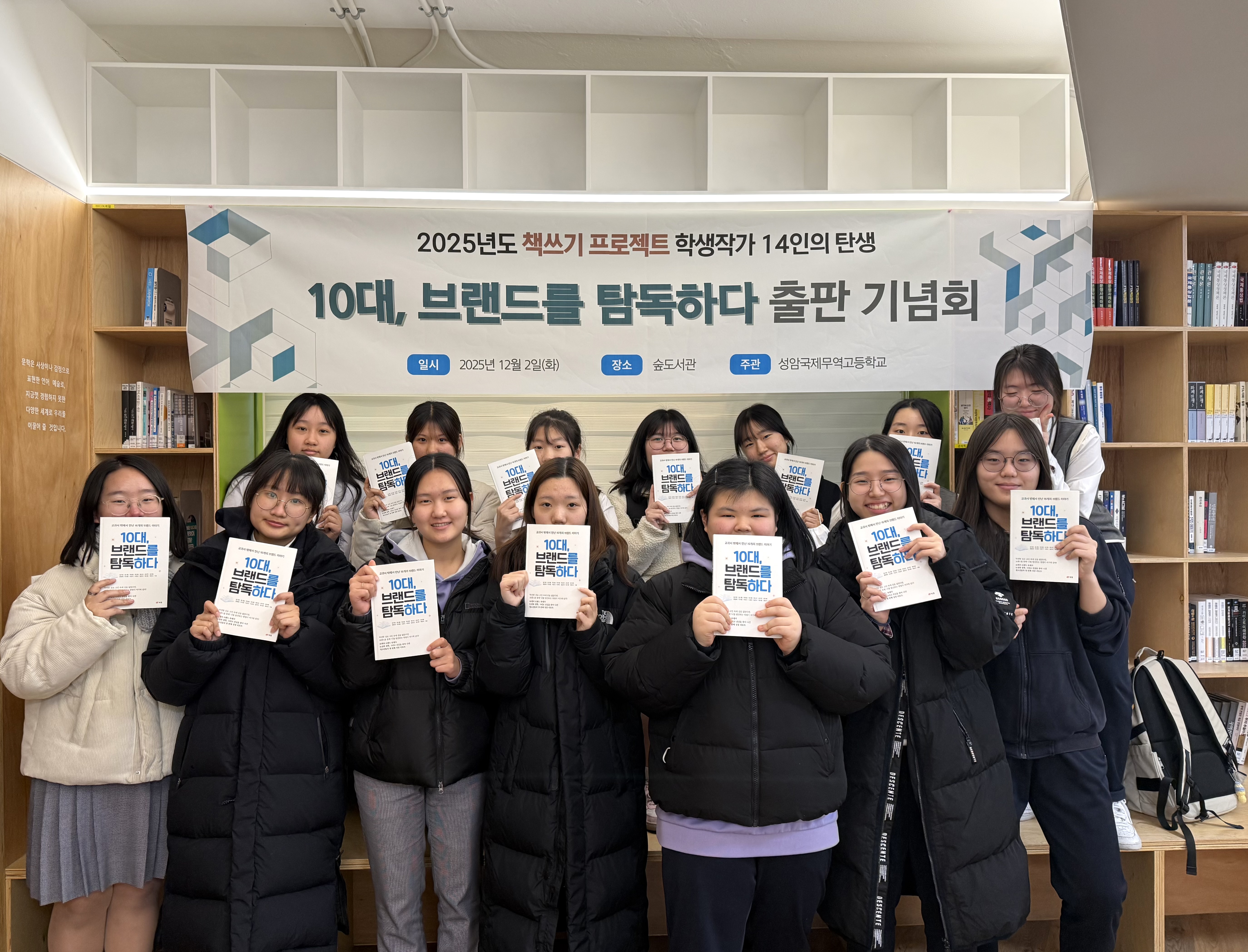 성암국제무역고등학교(서울 강북구)가 지난 2일, 학생들이 직접 집필에 참여한 책 『10대, 브랜드를 탐독하다』의 출간을 기념하는 출판기념회를 개최했다. 이번 책쓰기 프로젝트에는 김가연(1학년), 김나림(2학년), 박보담(2학년), 박서영(1학년), 백서이(2학년), 손지우(2학년), 유지혜(2학년), 윤영채(1학년), 이서현(2학년), 이은서(2학년), 이효인(2학년), 임민아(2학년), 최서윤(2학년), 최연서(2학년) 학생 작가가 참여했다.