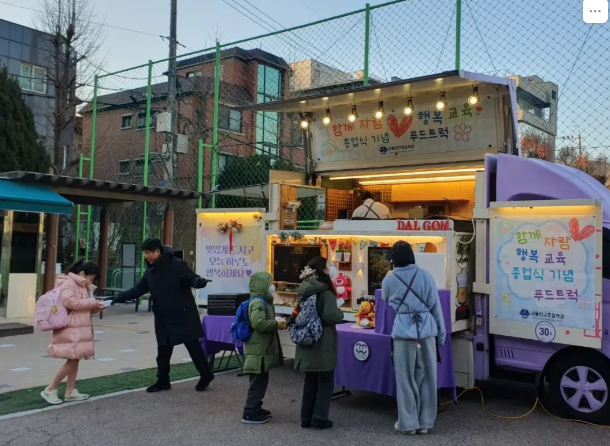 1월 6일 (목), 종업식을 기념하여 신구초에 핫도그 트럭이 방문하였습니다. 등굣길에 정문과 후문에서 맛있는 핫도그를 받은 학생들은 행복한 미소로 하루를 시작했습니다. 이번 행사가 학생들에게 한 학년의 마지막을 기분 좋게 마무리할 수 있는 즐거운 경험이 되었길 바랍니다.