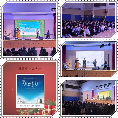 서울용두초등학교(교장 김명자)는 2025년 12월 22일(월)에 전교생을 대상으로 본교 미르누리관에서 콘서트와 낭독극의 융합형 공연 “마음에 쏙쏙 찾아가는 생명존중 콘서트”를 진행하였습니다. 권봄의 재즈 동화 ‘어느 고양이 이야기’를 서정적 음악과 동화적 서사를 활용하여 생명존중의 메시지를 전달하였습니다. 이번 공연을 통해 반려 인구 1500만 시대에 종을 초월한 우정과 반려에 대한 책임감이나 공존에 관한 사회적 인식을 높이고 학생들의 문화예술 감수성을 키우고 성숙한 반려 문화의 확산과 생명을 존중하는 계기가 되었습니다.