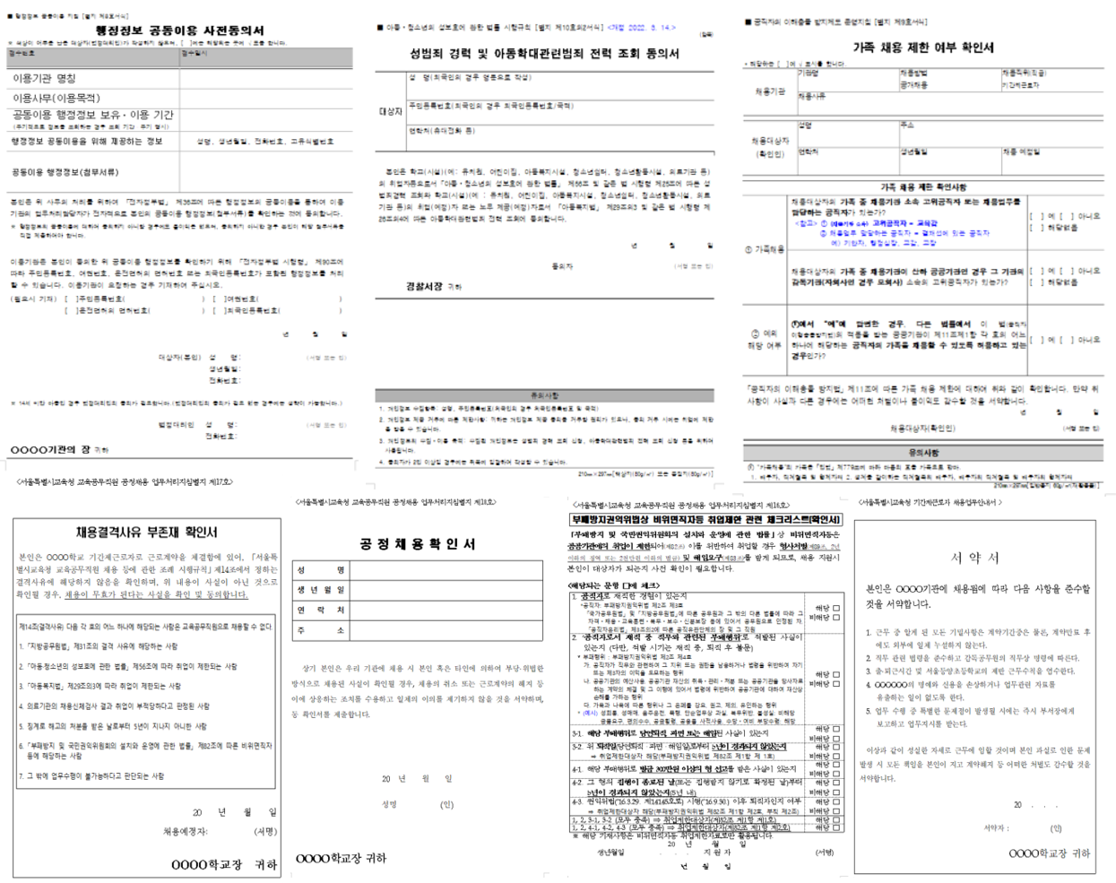 ▢ 그동안 학교 현장에서는 채용 관련 구비서류가 분산돼 있어 개별 서식을 작성하고, 동일한 인적 사항을 여러 서류에 반복 입력해야 하는 업무 비효율이 지속되어 왔다.