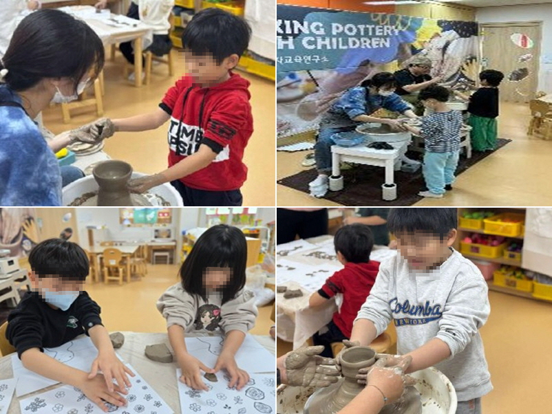 □ 서울세곡초등학교병설유치원(원장 노현숙)은 11월 11일(화), 유아들이 흙의 부드러운 촉감을 느끼며 창의성을 발휘할 수 있는 ‘찾아오는 도예 체험 활동’을 실시하였습니다. 유아들은 빙글빙글 돌아가는 물레 위에 올려진 점토가 손길에 따라 모양이 변하는 과정을 신기하게 관찰하였습니다. 도예 선생님과 함께 힘을 조절하며 말랑말랑한 흙을 끌어 올려 동그란 '공기(밥그릇)'를 직접 빚어보는 특별한 시간을 가졌습니다. 손끝으로 전해지는 흙의 매끄러운 질감을 느끼며 정성껏 그릇을 완성해 나가는 유아들의 얼굴에는 진지함과 설렘이 가득했습니다. 친구들이 만든 각양각색의 그릇을 서로 응원하며 감상하는 과정에서 예술적 소통의 즐거움도 함께 나누었습니다. 도예 체험을 통해 유아들이 손끝으로 세상을 표현하며 자신만의 예술적 감수성을 마음껏 펼치는 계기가 되었습니다.