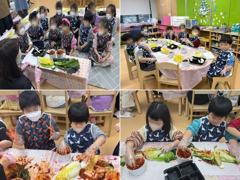 □ 서울세곡초등학교병설유치원(원장 노현숙)은 12월 12일(금), 우리 전통 음식 문화를 이해하고 나눔의 의미를 배우기 위한 ‘김장 체험’을 실시하였습니다. 유아들은 김치가 만들어지는 과정을 알아보고, 배추 절이기와 양념 만들기 과정을 차근차근 살펴보았습니다. 위생 교육과 안전 수칙을 안내받은 후 앞치마와 위생장갑을 착용한 유아들은, 배추 속에 양념을 정성껏 채워 넣으며 김치가 완성되는 과정을 직접 체험하였습니다. 또한, 김장이 단순히 음식을 만드는 것을 넘어 가족 및 이웃과 정을 나누는 우리나라의 소중한 공동체 문화임을 배우는 시간이 되었습니다. 김장 체험 활동을 통해 유아들은 전통 음식에 담긴 지혜와 소중함을 몸소 느끼며, 바른 먹거리에 대한 감사함과 가족을 생각하는 따뜻한 마음을 키우는 계기가 되었습니다.