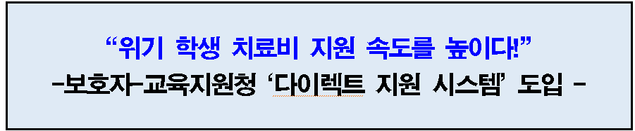 이번 제도 개선으로 위기 학생에 대한 치료 지원이 보다 신속하게 이루어지고, 보호자의 행정·심리적 부담도 완화될 것으로 기대된다. 또한 학교는 행정 업무 부담을 줄이고 학생 상담과 교육 활동에 더욱 집중할 수 있을 것으로 보인다.