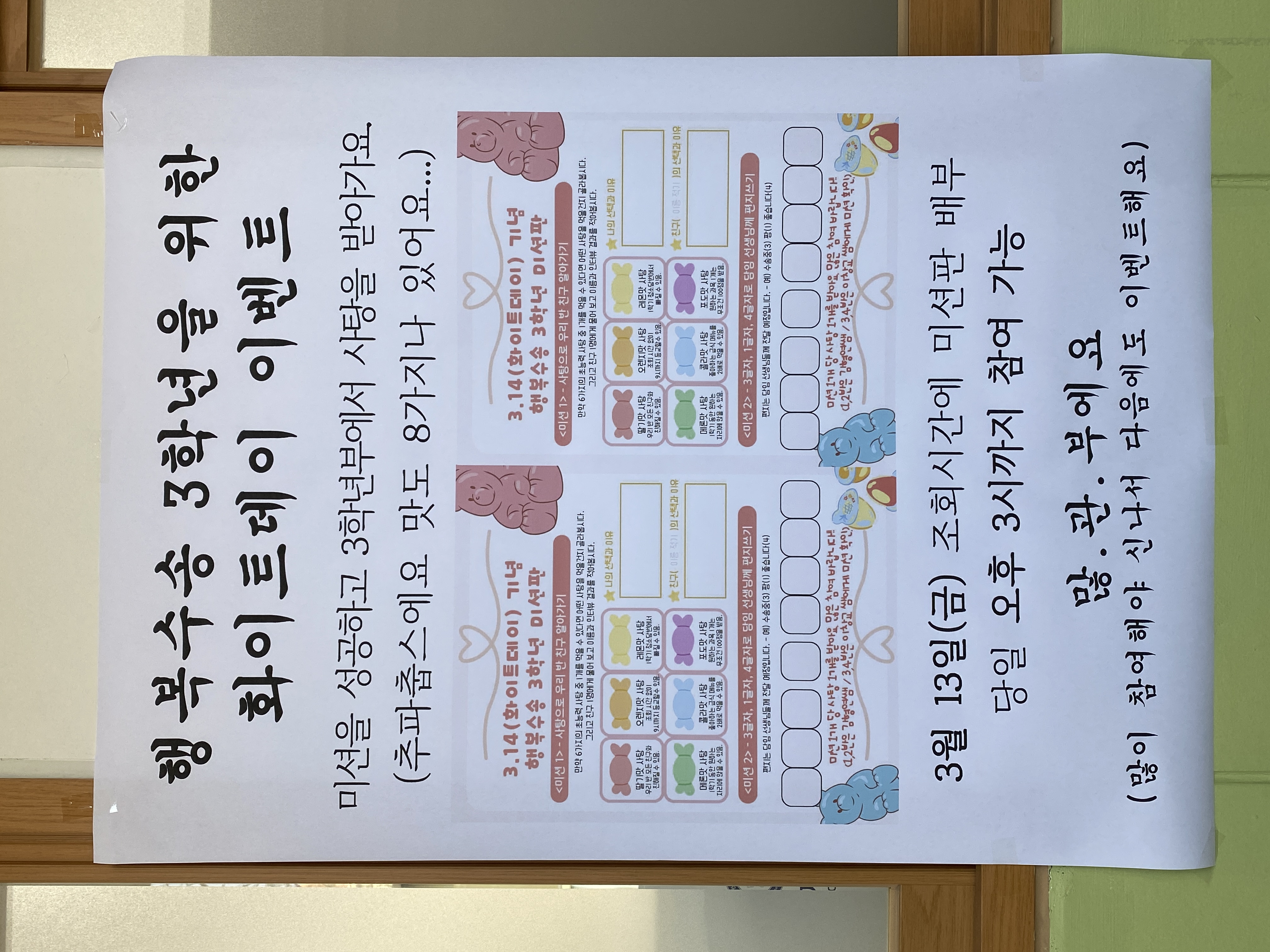 그 이름은 바로바로 “행복수송 3학년 화이트데이 미션 이벤트!”