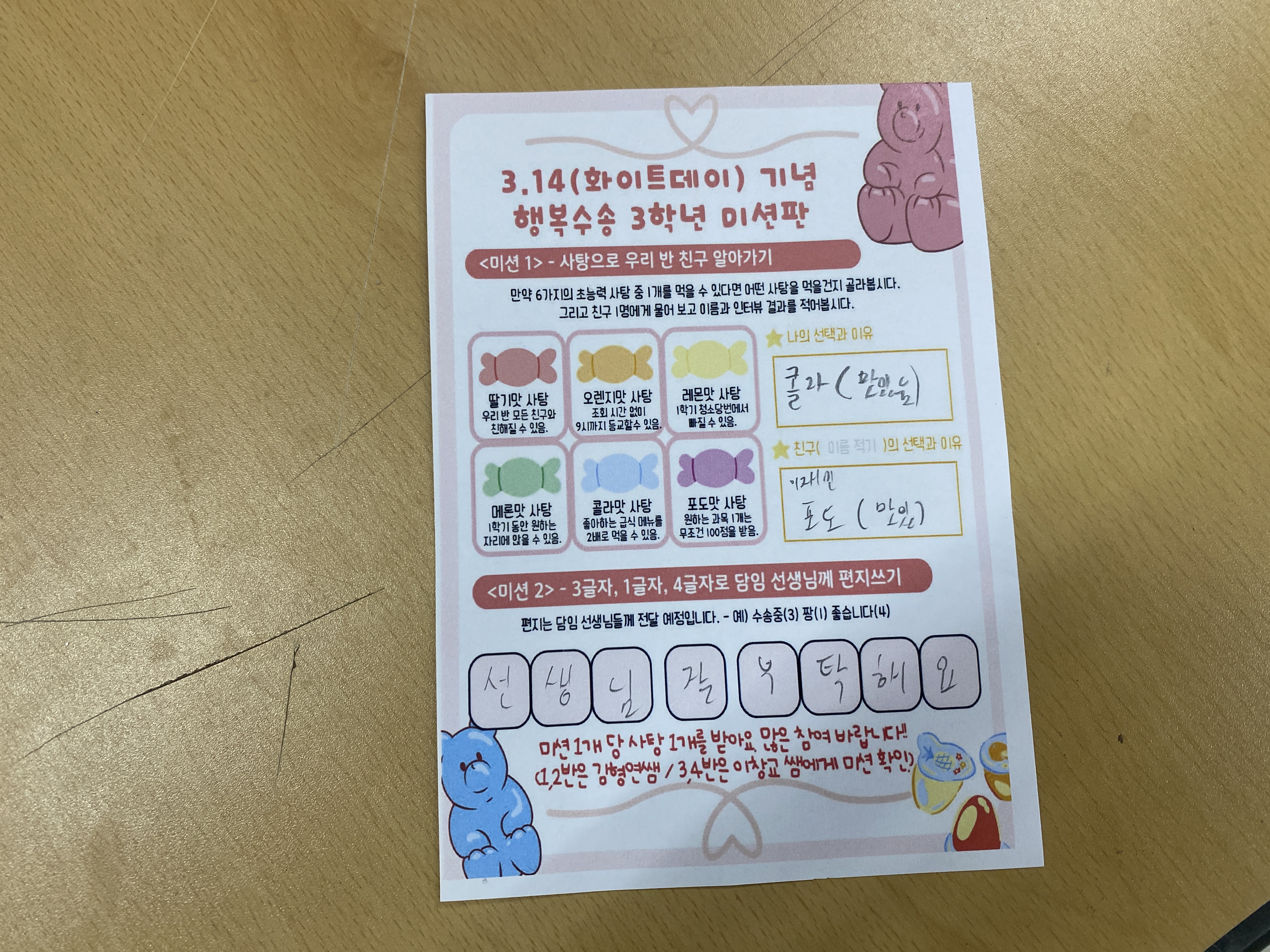 달콤한 응원, 힘찬 출발! 행복수송 3학년 화이트데이 이벤트!