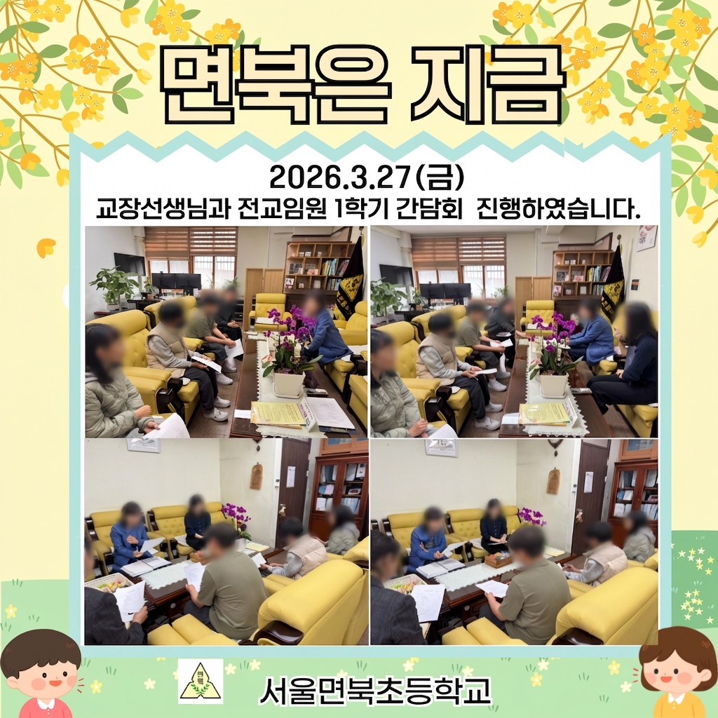 서울면북초등학교(교장 이경희)에서는 26년3월27(금)에 교장실에서 '교장선생님과 전교임원 1학기 간담회'를 개최했다.
