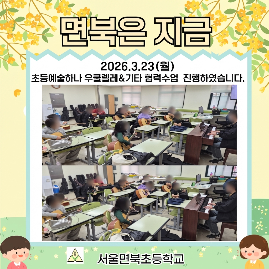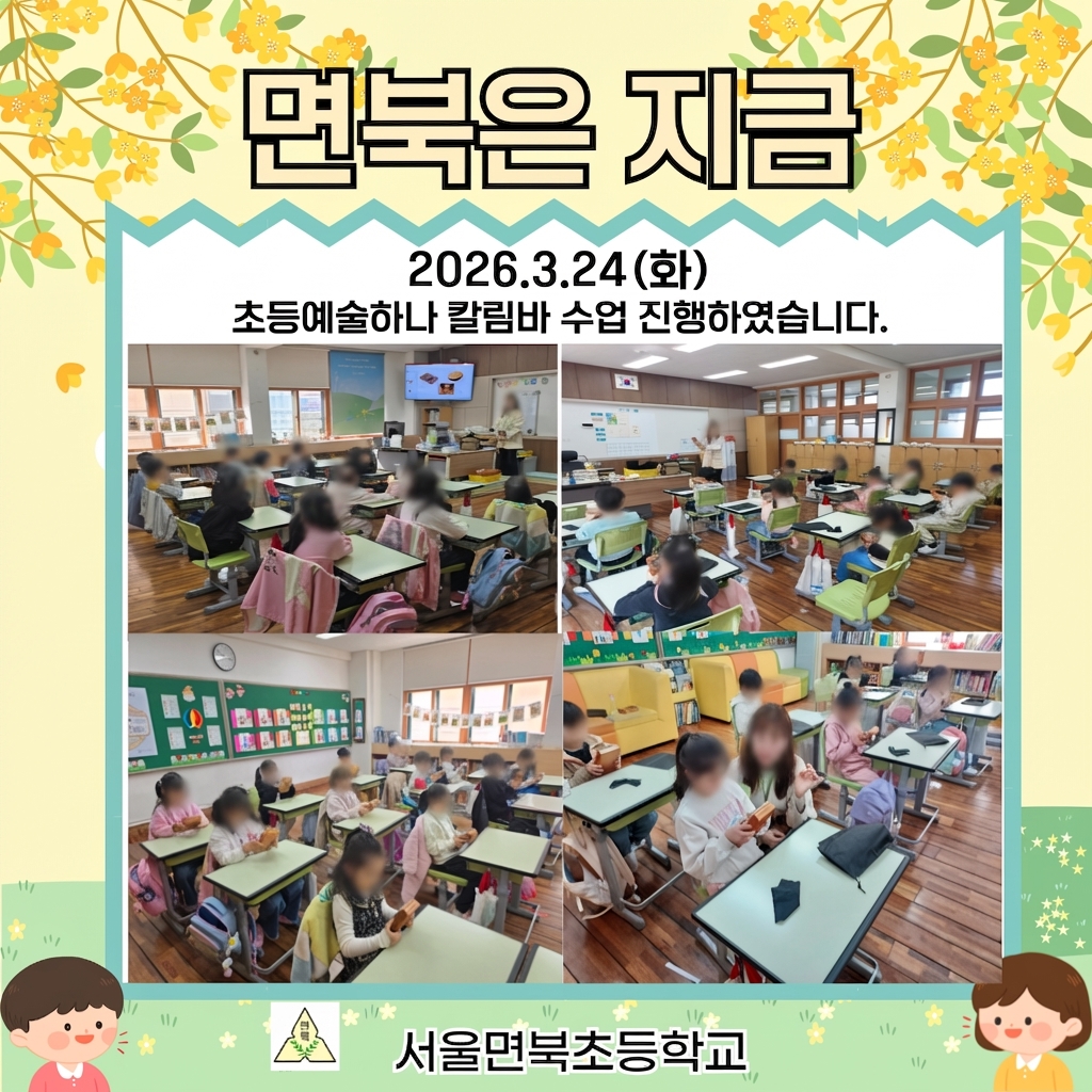 서울면북초등학교(교장 이경희)에서는 2026.3.23(월)을 시작으로 학생들의 예술적 감수성과 창의력을 키우기 위해 ‘초등예술하나’ 교육 프로그램을 운영하고 있습니다.
