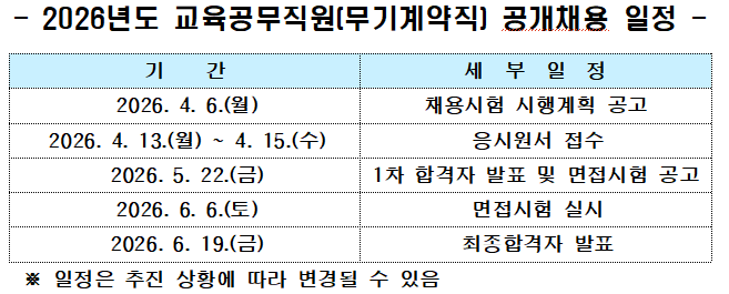 ▢ 2026년도 공개경쟁채용은 우수 인재 확보를 위해 연 1회 실시되며, 채용의 전문성과 공정성을 높이기 위해 제도를 일부 개편하였으니, 지원자들은 공고문을 숙지하여 원서를 접수해야 한다.