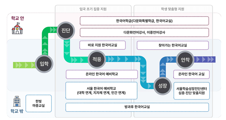 ▢ 서울특별시교육청(교육감 권한대행 김천홍)은 이주배경학생들의 공교육 안착을 지원하기 위해 입국 초기부터 학교 적응까지 이어지는 “단계별 맞춤형 한국어교육 지원책”을 본격 확대 추진한다.