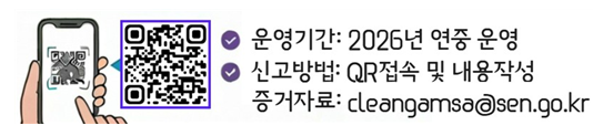 ▢ 이러한 불법찬조금은 주로 음성적인 방식으로 조성되는 특성상 선제적인 적발에 한계가 있어, 학부모 등 교육공동체의 적극적인 신고가 근절을 위한 가장 핵심적인 요소로 꼽힌다. 이에 서울특별시교육청은 시공간의 제약 없이 누구나 즉각적으로 제보할 수 있도록 접근성을 대폭 강화한 모바일 신고 시스템을 구축했다.