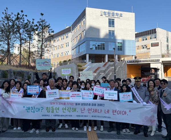 ▢ 서울특별시동부교육지원청(교육장 김선자)은 ‘동부 생명존중교육 집중기간(’26.4.6.~4.17.) 운영과 연계하여 지난 4월 7일 ‘모두가 모두를 지키는’ 생명존중 캠페인을 개최하고, 현장 중심의 생명존중 문화 확산에 나섰다.