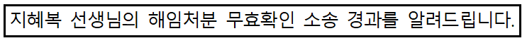 ❍ 지혜복 선생님 측에서 재판부의 조정권고안을 수용할 경우 해당 조정권고안은 최종 확정되며, 이에 따라 지혜복 선생님에 대한 해임 처분은 취소될 예정입니다.