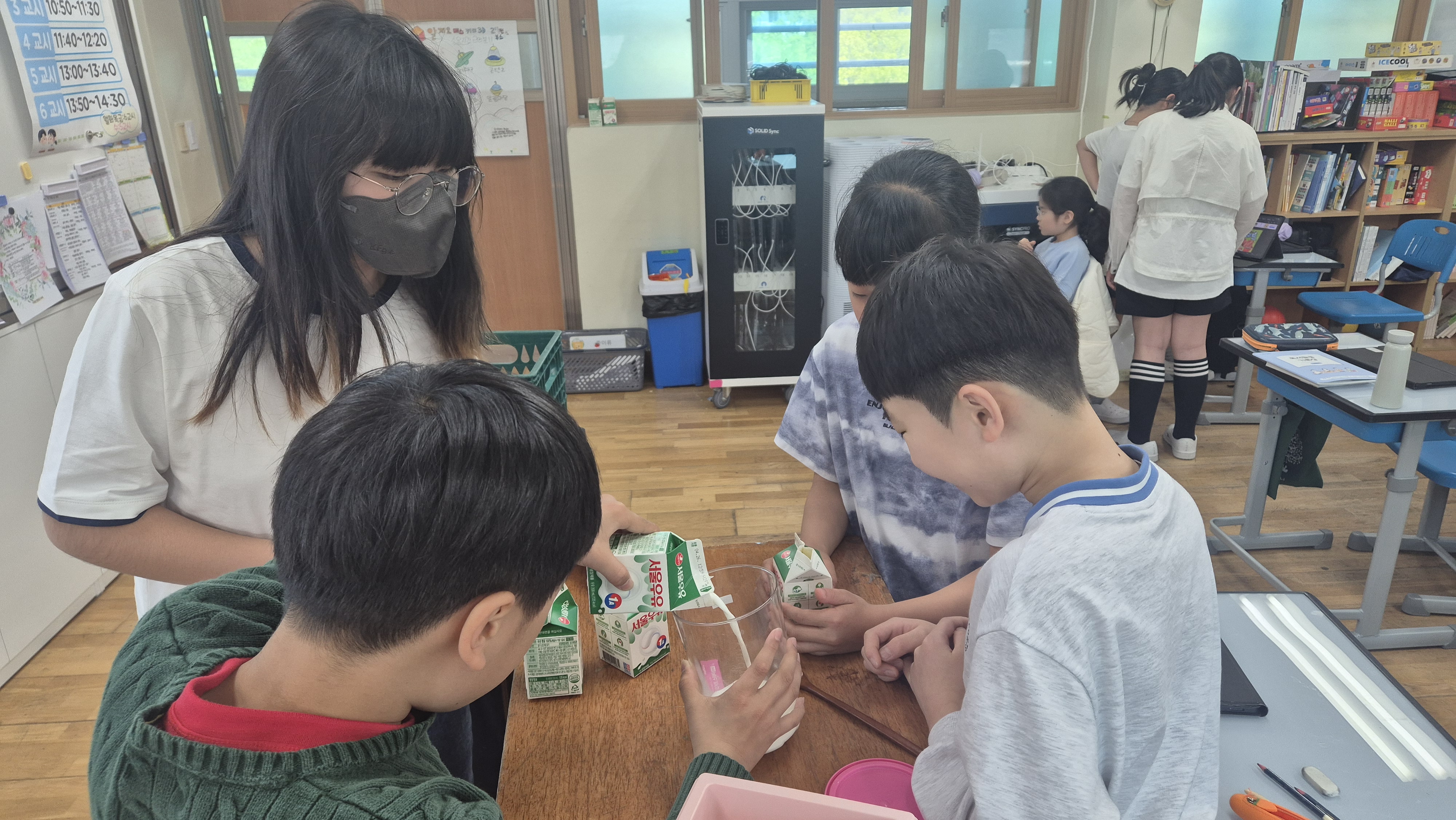 *학생들이 남은 우유를 활용해 요거트를 만드는 자원순환 활동에 참여하고 있다. (사진=서울당현초 제공)