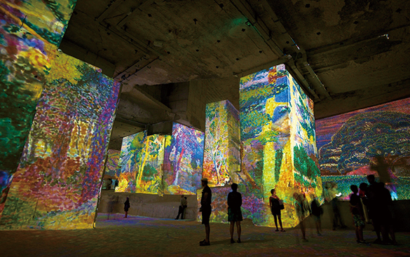 ‘몰입형 예술 전시(Immersive art exhibition)’는 작품을 생동감 있게 빛과 음악으로 재해석하는 전시이다. 이를 위해 고화질 프로젝터와 대용량 서버, 스피커, 영상 음향 자동화 시스템 및 3D 음향 등 최신 기술이 적용되었다. 프랑스 남부 레보드프로방스 지역의 폐채석장을 개조해 ‘빛의 채석장(Carrires des Lumires)’이란 이름의 몰입형 전시를 선보인 사례가 있는데, 1935년 채석장이 문을 닫은 후 인구수가 1만 5천 명으로 급감했던 이 지역은 빛의 채석장을 선보인 이후 2016년 기준 한 해 동안 약 60만 명의 관광객이 방문하는 관광도시로 변화하기도 했다. 즉 몰입형 전시를 통해 생동감 있는 교육 변화를 이끌고 있는 셈이다.